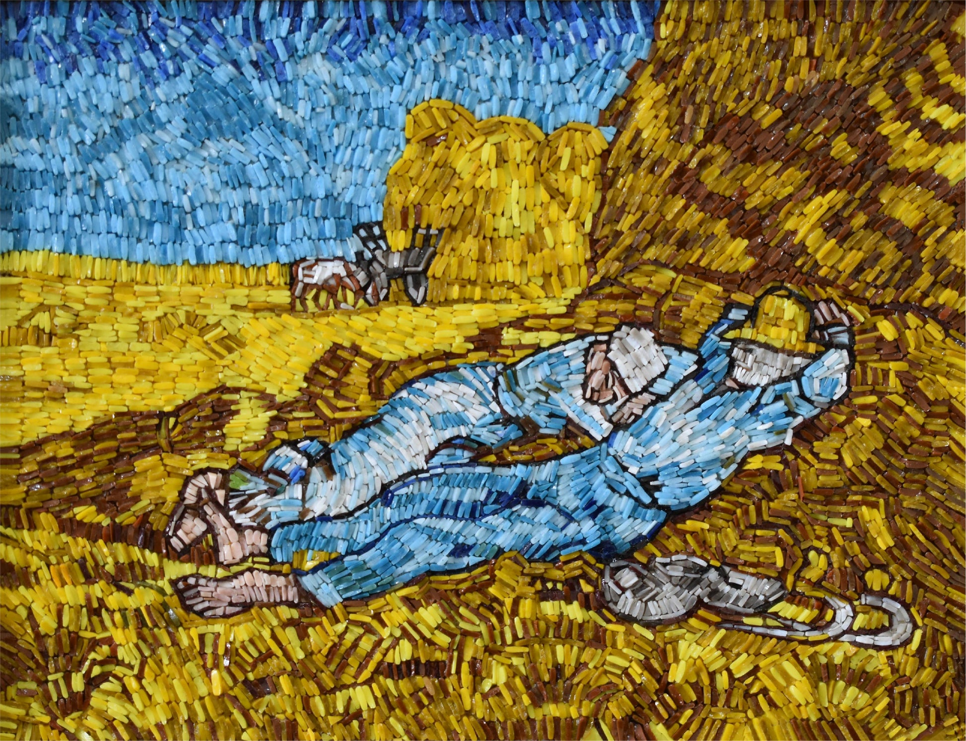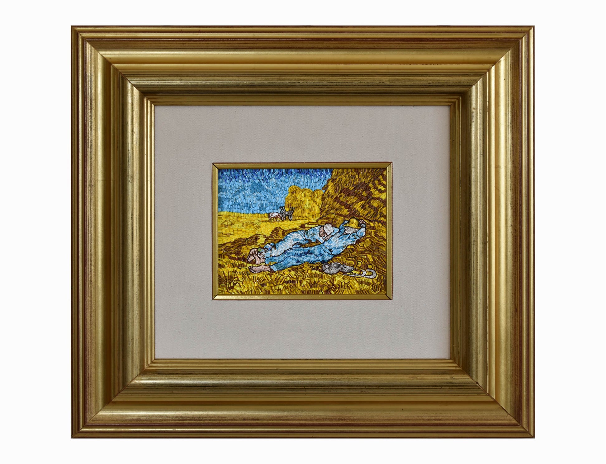 Vincent van Gogh's 'The Siesta (after Millet)' is a reinterpretation of Jean-François Millet's original painting in his post-impressionist style. While the central figures remain a resting couple, Van Gogh adds his emotional depth, transforming the scene into an embodiment of his connection to Millet's themes. Our micro mosaic recreation of 'The Siesta (after Millet)' captures the essence of Van Gogh's reinterpretation, inviting you to experience the emotional depth he added to the scene. Through meticulous micro mosaic artistry, we pay homage to Van Gogh's unique perspective while preserving the human experience he conveyed.